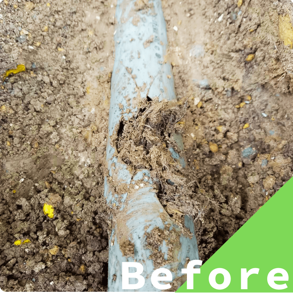 詰まりの箇所を確認していると、割れた下水管に木の根っこが入り込み流れを遮っていることがわかりました。