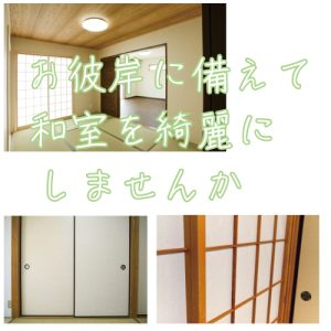 お客様をお迎えするキレイな和室 九月になると秋のお彼岸がきます。お客様のいらっしゃる機会が増えますね。和室を綺麗に変身させてみませんか? 大がかりなリフォームなんてしなくても、白くピンッと張った障子はお部屋が明るく見ます […]