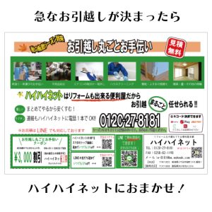 急な異動・転勤が決まったら? 急に引っ越すことが決まったら ハイハイネットにおまかせください まるごと!ハイハイネットがお手伝いします! 相談・見積・作業依頼もハイハイネットに電話1本でOK! お電話お待ちしております( […]