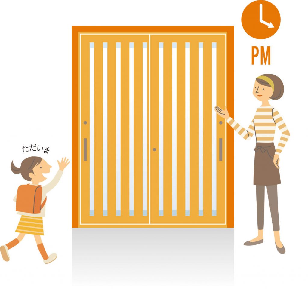 朝、古い玄関でお見送り