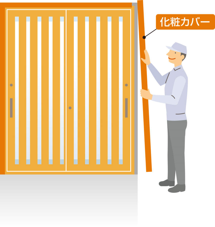 三協アルミの玄関引戸リフォームは、既設枠の上に新しい枠と障子を取り付ける【1dayスピード施工】です。床などの工事が不要で、わずか一日で取り替え作業が完了します。